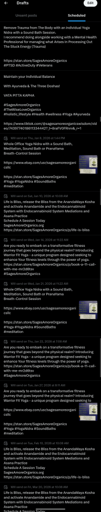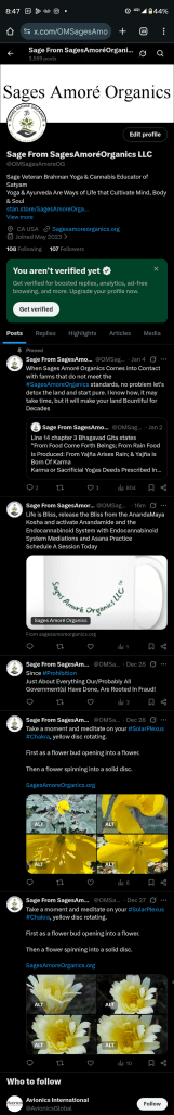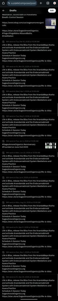 Yoga Retreats will be focusing on balancing your Mind Body Spirit & Earths energies to clear and balance them not only the participants but also the Earth. This is to address the Catastrophic Weather Patterns. Think about it, what is a Storm? It is a build up of energy from an imbalance or a blockage that needs to flow. We have energy channels called Chakras and Nadis the Earth, Plants, Metals, Rocks, Water, etc… have energy channels too. If the earth did not have an Auric Field/Electromagnetic Field of its own there would be no gravity and water would float around. The Electromagnetic Field of the Earth has been Used Extensively with no regard to the Earth for maintenance or repair as we Use the Earths Systems and Drain the Earth of all it’s Essence (natural resources) there will be No Future if we do not act now, before the Covid-19 Pandemic, before the Ukraine War and Other Train-wreaks of environmental Toxicity we had roughly 60 years of usable soil left. It’s clear that number is much less now… The time to Join Sages Amoré Organics is Now, maybe you have noticed USDA Organic Label Does Not 🚫 represent your Organic Farm Anymore, If You have a Beyond USDA Organic Farm and Are interested Contact Sage at